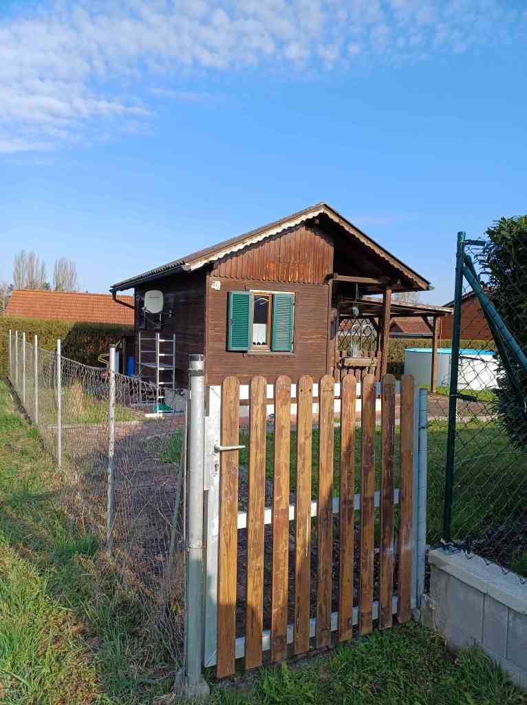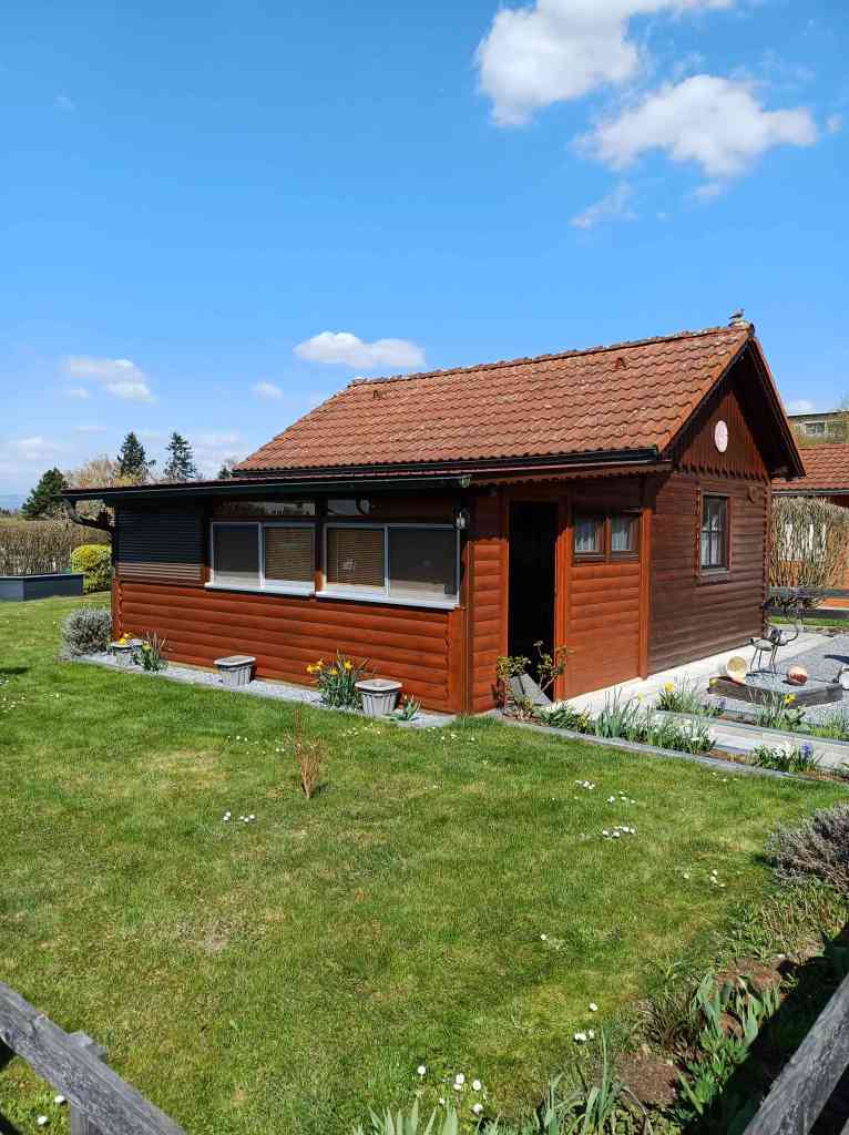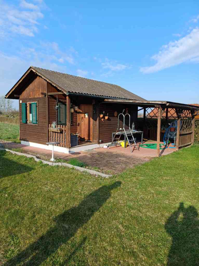 24 m² Gartenhütte inkl. Veranda (2,47 m²), Keller mit Bodenklappe.